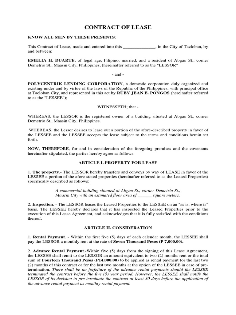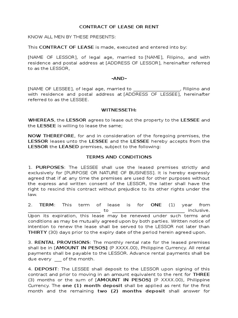 Free Basement Lease Agreement Forms Pdf Word from images.sampleforms.com At the end of the term: A lease agreement allows a tenant to occupy space in exchange for the payment of rent to the landlord. The lease contract contains rental agreement, which specifies the tenant's right to live and the landlord's right to retain ownership. This type of agreement gives the individual renting the property the right to purchase the residence at any time during the course of the lease. Amount in words (p 00,000.00), philippine currency. A lease or rental agreement sets out the rules landlords and tenants agree to follow in their rental relationship. The rental agreement you will sign with your tenants is a legal, binding contract. Wherein the two (2) months deposit shall be applied as rent for the 11th and 12th months and the remaining one (1.